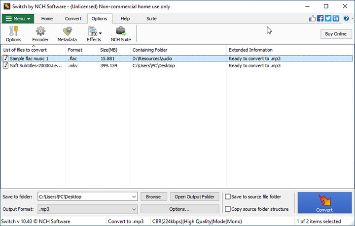 Switch Audio File Converter is a commercial software developed by NCH Software. As the name suggests, its main feature is to convert audio files. When it comes down to format support, you can convert audio files from or to MP3, WAV, FLAC, and more. In addition to the key audio formats, it also supports the RAW format. The Windows version also provides the feature of audio to .txt to generate a rough approximation of the words spoken in an audio file.