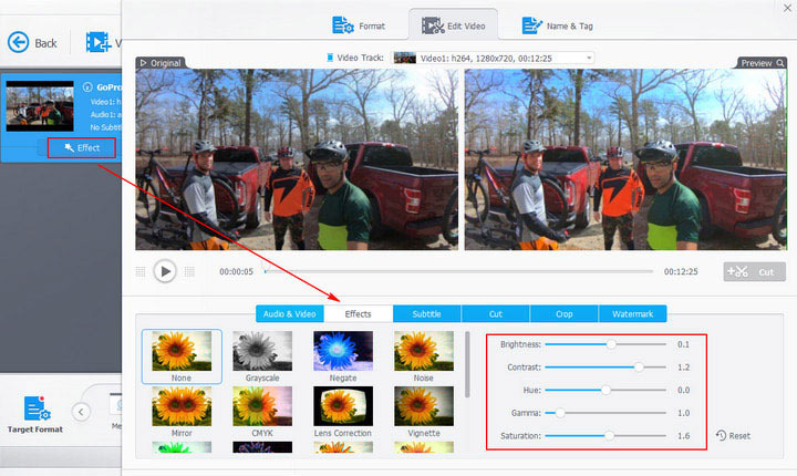 2. If necassary, tap Effect in the edit bar. You can apply an effect (filter), or adjust contrast, brightness, saturation and so on to make the video image look better.