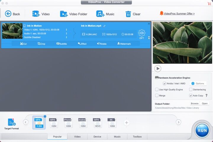 VideoProc Converter AI runs as an all-in-one .arf to .mp4 converter accessible to both Mac and PC devices. With the tool, you can easily record your ARF files and convert them into MP4 within a few clicks. It peaks Level-3 Hardware Acceleration and extends the smoothest ARF recording and transcoding without jeopardizing the quality. Besides, the arf to mp4 converter also enables you to adjust a full set of resolutions, bit rate, frame rate, aspect ratio, etc. to resize and enhance your ARF video files.