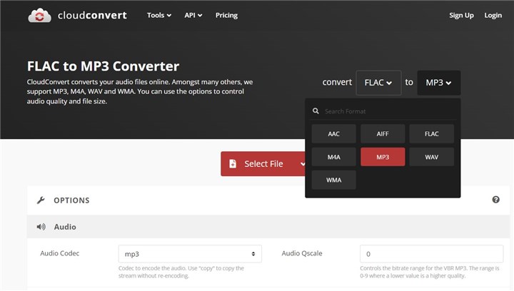 Visit its website on your browser and choose MP3 or other formats that are supported by iTunes. Click Select Files to upload your FLAC audio here. Click Convert button once you're ready.