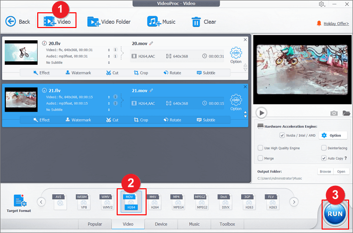 Now let's download VideoProc Converter AI to the computer and follow the steps below to convert FLV to MOV within steps.