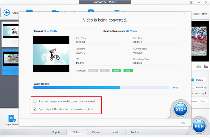 VideoProc Converter AI an all-inclusive program for video processing, offers batch conversion of FLV to MOV and other formats. With its special GPU acceleration technology, VideoProc Converter AI accelerates the conversion of your video files by up to 47 times. While converting FLV to MOV, it preserves the majority of the video quality and provides 420+ output formats.