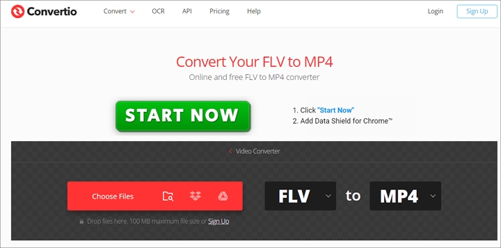 Click Choose Files to upload your FLV files and set MP4 as the target format. Then click Convert Now to start converting FLV to MP4.