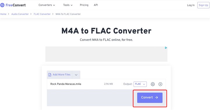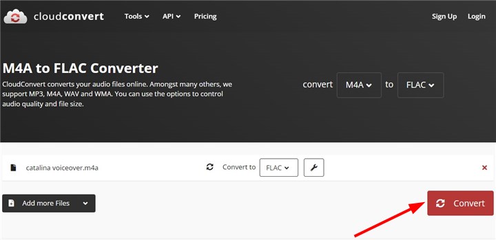 However, some users could find its file size and conversion time restrictions, as well as its reliance on an online network, to be a disadvantage. You can convert files up to 1 GB in size and 25 minutes in length using the tool's free version. You might need to upgrade to the tool's commercial subscription if you need to convert lengthier or larger files. Simply upload your M4A file, choose FLAC as the output format, and hit the convert button.