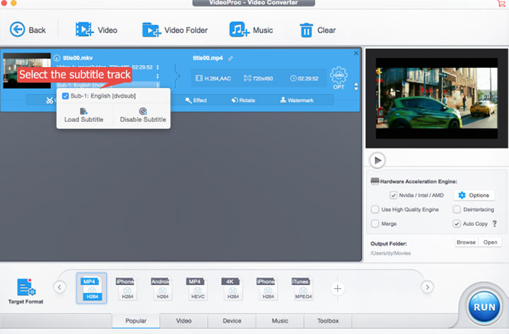 - Step 1. Install and launch VideoProc Converter AI on Mac. Hit Video and drag the source MKV files with subtitles for adding to the program.