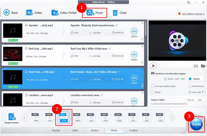 VideoProc Converter AI is a powerful program that not only allows you to convert MP3 to WAV files but also offers a range of video processing features. With VideoProc Converter AI, you can easily convert your MP3 files to WAV and other formats while maintaining high-quality audio. VideoProc Converter AI supports hardware acceleration, providing faster and smoother conversion experience without affecting quality. Because of this capability, VideoProc Converter AI is a fantastic audio conversion option for people who need to swiftly convert huge audio files.