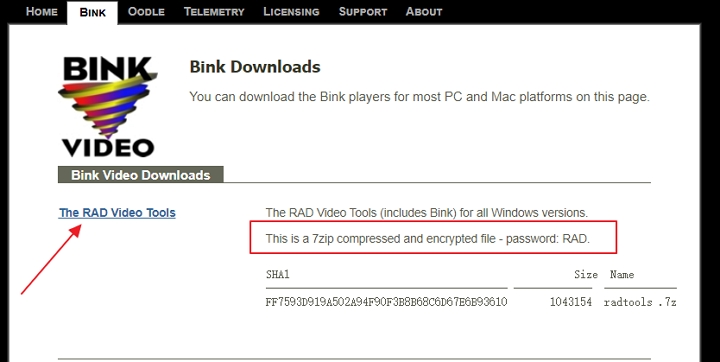 Visit RAD Game Tools and download The RAD Video Tools to your computer. It's a zipped file, and you need to decrypt it with password RAD.