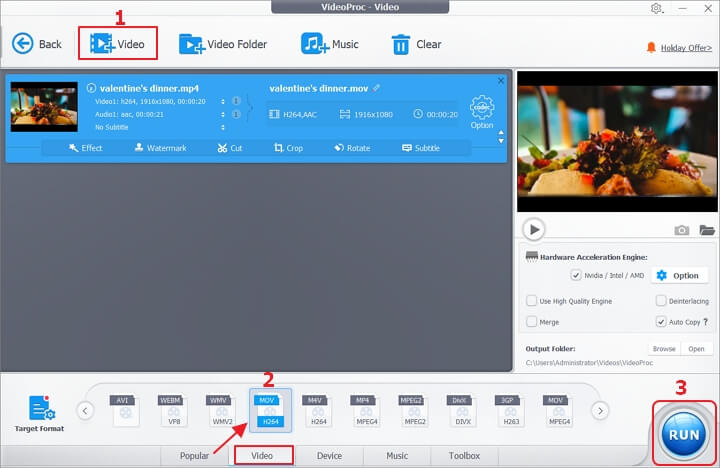 Watch the video tutorial of how to convert MP4 to MOV in VideoProc Converter AI.
