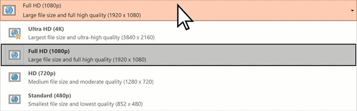 Click and expand the first drop-down list to select the video quality. Video quality is related to the resolution of the exported video. Higher resolution means better video quality, and a larger file size too.