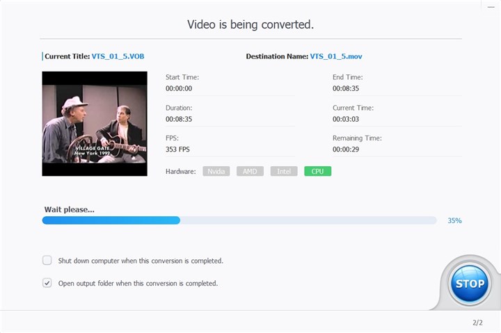 Step 3. Click the Convert button to begin converting VOB to MOV format.
