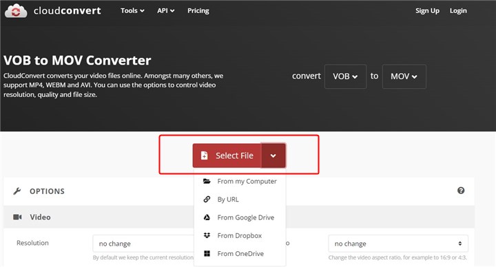 Method 3: Convert VOB to MOV with CloudConvert