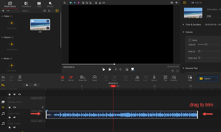 Step 4. Drag it into the Audio Track. You can adjust the audio of the WebM before converting it to MP3. For example,