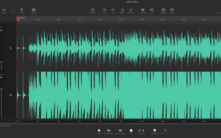 • Hit Audio on the toolbar to open the Audio Editor. Here you get a huge array of audio editing tools to edit and improve the soundtrack. Hit Apply to confirm your changes.