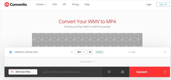 Convertio is also an impressive online file converter that supports converting WMV to MP4 within simple clicks. It's an ultimate tool that works as a video converter, audio converter, image converter, font converter, document converter, presentation converter, archive converter, etc. It won't consume any of your computer space cause all conversions take place in the cloud. No one has access to your uploaded files and all your converted files will be deleted after 24 hours. You can upload files up to 100MB.