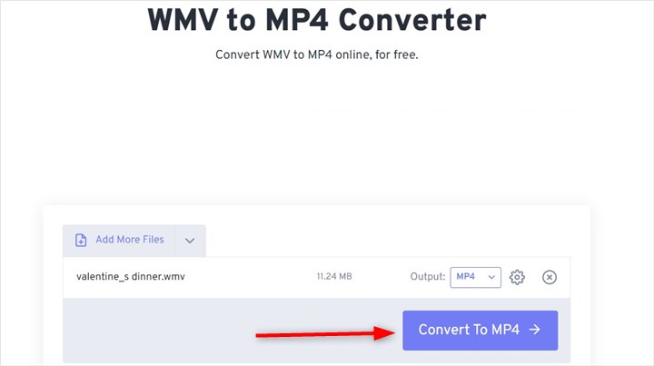 Click Choose Files to import your WMV video and then click Convert To MP4 to begin converting WMV to MP4 online for free.