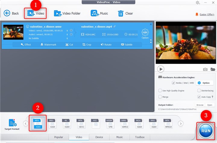 Watch the video tutorial of how to convert WMV to MP4 in VideoProc Converter AI.