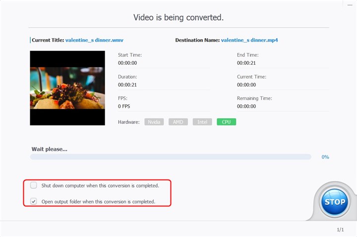 Step 3. Its GPU acceleration technology makes it super fast to convert WMV to MP4. You can let it shut down your computer or open the output folder after the conversion.