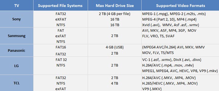When we enjoy movies from an external hard drive on TV, the TV should not be merely taken as a display screen. It performs like a storage data reader to analyze videos on your drive in some way, thus here come compatibility issues. In case you finish copying DVDs to a hard drive but find out it cannot be recognized by the TV, let's figure out what videos and file system types are supported on your TV.