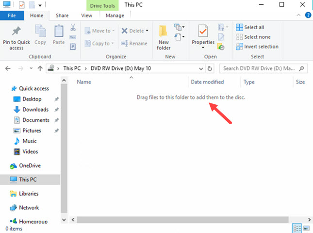 Eject the DVD and insert a blank or a rewritable disc into your PC. Once it spins up, a window pops up to ask what you want to do. Just choose "Burn files to disc" in this dialogue. If the AutoPlay prompt is disabled, go to "This PC" section on Windows 10 or "Computer" on Windows 7/8.1, and double-click on the disc drive.