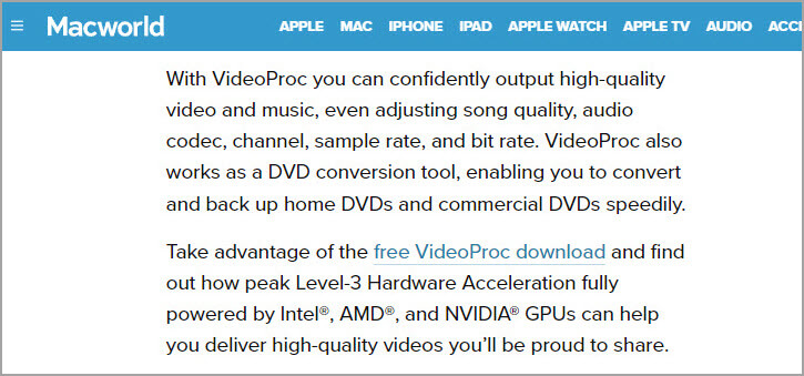 VideoProc Converter AI is a powerful tool for converting DVDs to MP4 on Mac. With its user-friendly interface, you can easily digitize your DVDs into MP4 format with just a simple click. Regularly updated by its dedicated development team, VideoProc can bypass protections such as UOPs, ARccOS, Sony X Project, Disney ARccOS, and even newer advanced encryptions. This ensures successful DVD conversions for all types of discs—including home DVDs, movies, training course DVDs, as well as DVD-R, DVD+R, DVD-RW, DVD+RW, DVD-R DL, and DVD+R DL.