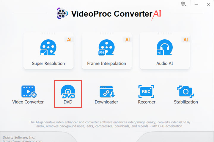 VideoProc Converter AI works both on Windows and Mac. We included the steps on Windows here for quick demonstration. If you are on Mac, you can also refer to this tutorial to convert DVDs to MP4 format on Mac.