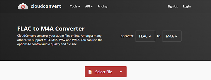 Besides using best audio converters offline, you can also resort to online tools. The FLAC to M4A converter online is also a decent choice for users who don't want to install the software. We'll take CloudConvert as an example. This cloud-based program to convert FLAC to M4A is quite easy to use and accessible from almost any browser. You can convert FLAC to M4A online quickly and efficiently.