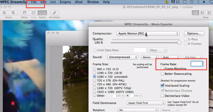 Step 4. In the Movie Exporter window, set the desired frame rate.