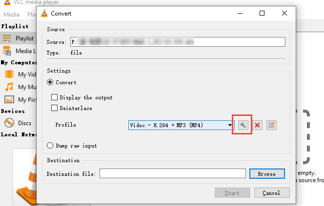 Step 3. In the convert window, click the spanner icon to open up the Profile Edition window.