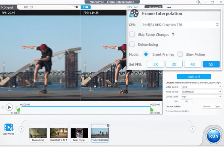 Using the Frame Interpolation feature in VideoProc Converter AI, you can easily increase and convert the video frame rate to add smoothness to the video.