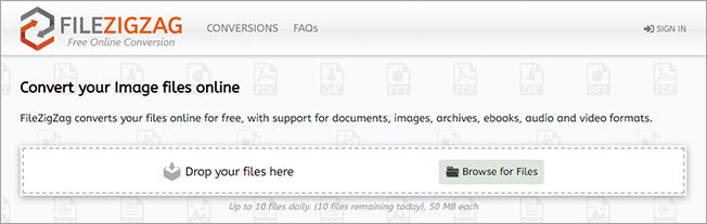 Filezigzag enables you to extract picture files from videos with a size smaller than 50M. For the whole process, you won’t be required to log in or installing any additional plugin.