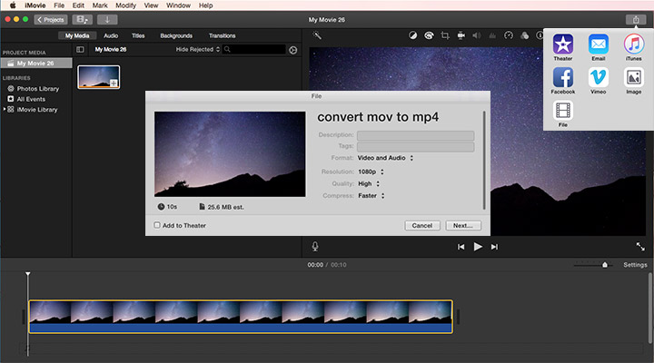 Step 5. Hit Next, select the output file location, and then hit Save. iMovie starts to convert iPhone videos to MP4.