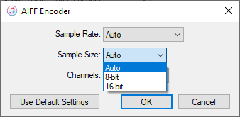 Click the gear icon named Option to change AIFF file settings. You can change the bitrate, and sample rate, edit audio tags, etc.