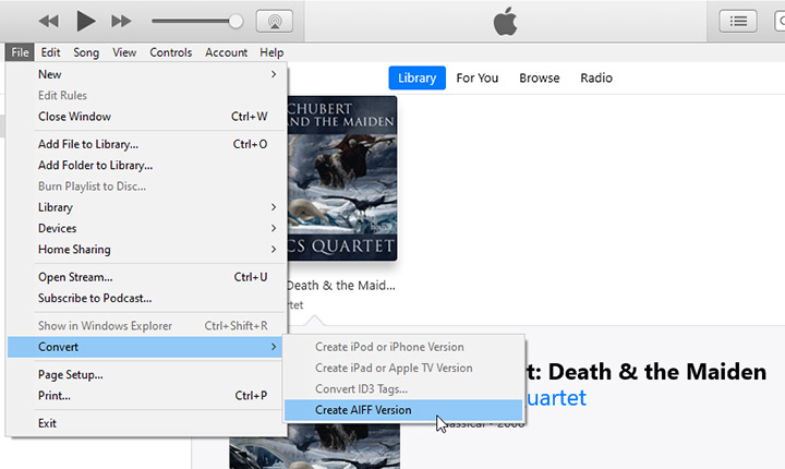 Step 5. Go to File > Convert > Create AIFF Version.