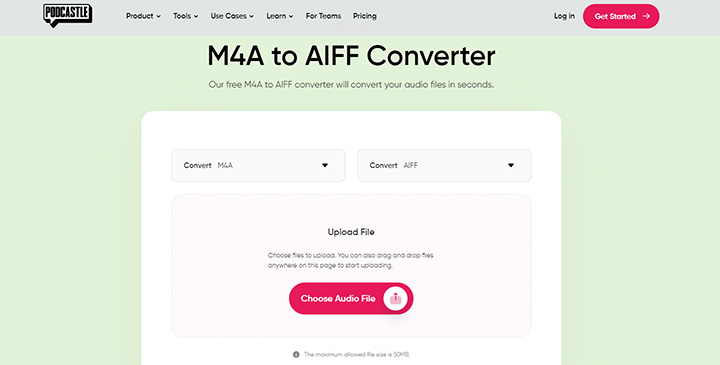 Podcastle offers an online solution for converting M4A to AIFF. It has a clean and quite easy-to-use interface. All you need to do is to upload your M4A file, and Podcastle will convert it to AIFF directly in its cloud server.