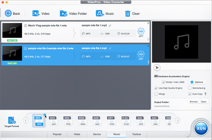 - Mass convert M4A to MP3 at high speed with GPU acceleration