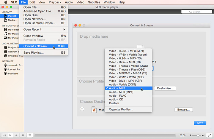 Follow the steps below to convert M4A to MP3 on Mac for free with VLC.