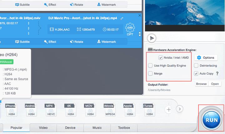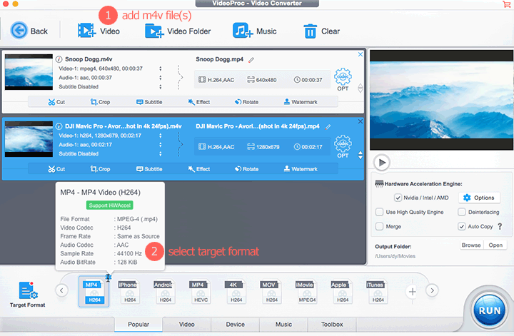 - Check NVidia/Intel/AMD to enable full GPU acceleration tech, so you can convert M4V to MP4 at 47x faster speed.