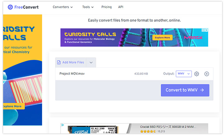 Freeconvert is similar to Zamzar, aiming to help beginners convert video, audio, image, document, ebook, archive, and vector files on the browser without installing the third-party program. A free account is allowed to upload MOV files that are up to 1GB, so it's absolutely a good option for those who want to convert a large MOV (over 200MB) to WMV online. For advanced users, there are options to tweak the encoding settings, make basic edits, and manage the audio track. Unfortunately, the web page of Freeconvert is full of ads that are redirected to fraud websites. In addition, uploading your video files to an online service might put data privacy at risk.