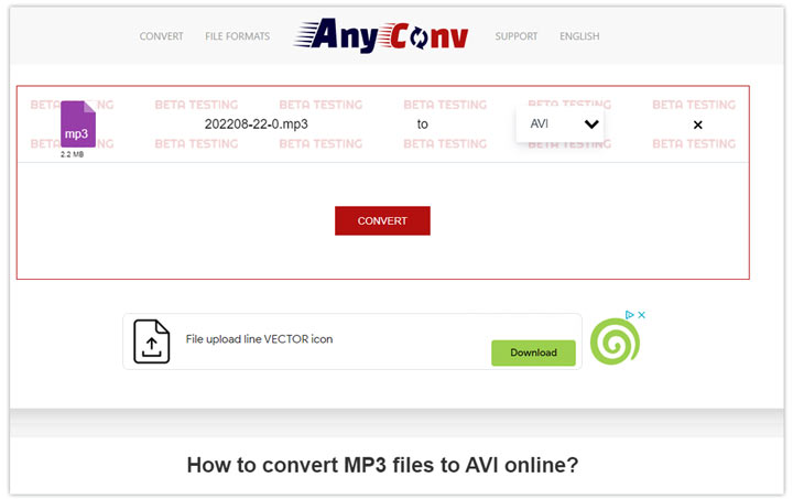 Step 3. Click on Convert to enable AnyConv to start converting MP3 to AVI.