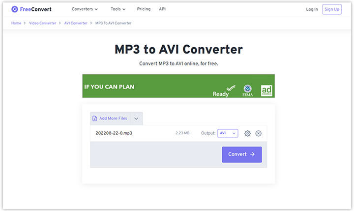 Freeconvert is one of the few online MP3 to AVI converter that can handle large AVI files as well as allows basic edits for MP3 files. Before exporting MP3 from AVI, you can adjust the length, volume, and codec for the MP3 file. You're even allowed to reverse the MP3 audio and apply a fade-in or fade-out effect. However, Freeconvert is still far from perfect. Pop-ups and ads are everywhere. The maximum upload file size for a free account is 1GB. Depending on your network condition, it might take hours to upload MBs of MP3 files.