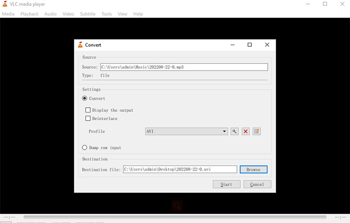 Step 9. Hit Start to enable VLC to start converting MP3 to MP4 on Windows, Mac, or Linux.