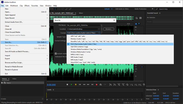 Below are the steps to convert MP3 to FLAC on Mac OS with Adobe Audition.