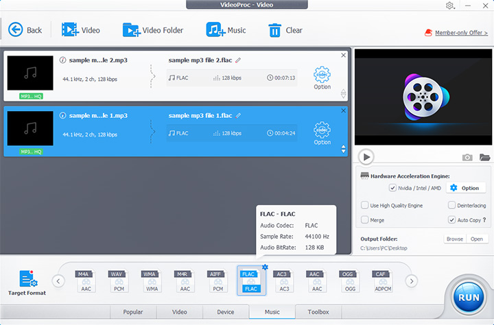 VideoProc Converter AI is a powerful yet easy-to-use MP3 to FLAC converter for Windows PC and Mac. Don't be fooled by its name. VideoProc Converter AI is a one-stop video processing software with a built-in audio converter.