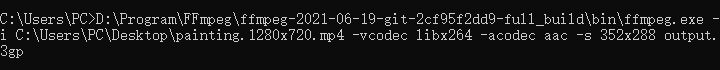 ffmpeg -i input.mp4 -vcodec libx264 -acodec aac -s 352x288 output.3gp