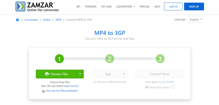 To convert MP4 to 3GP online for free, Zamzar is a reliable video converter online. It is especially suitable when you have a single MP4 file with a small size or saved in the cloud. You don't need to go through the hassle of installing software.