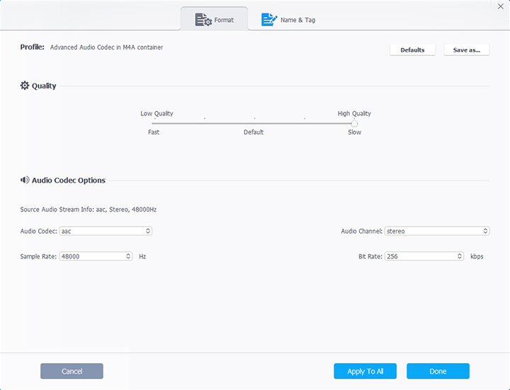 You can also edit the metadata in the "Name & Tag" tab, including name, artist, album, media cover, etc. Click "Done" to confirm the changes.