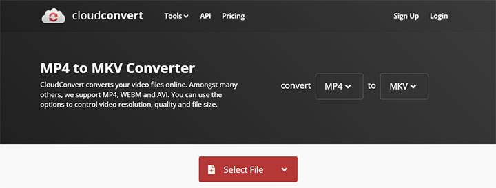 Step 1. Visit https://cloudconvert.com/mp4-to-mkv in your browser.