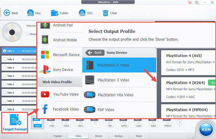 Step 4. Click RUN to start making DVD region-free for PS4 or PS5. When it's done, you can copy the digitized DVD content to a USB drive, and play it on PSP from USB.