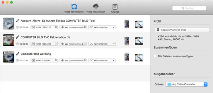 Output format: Convert to 420+ output formats, such as HEVC, MP4, MOV, MKV, AVI, WebM, Mac-compatible QuickTime, ProRes, format profile for Final Cut Pro, iMovie, Apple TV, iPhone, audio format MP3, AAC, iPhone ringtone, M4A, etc.