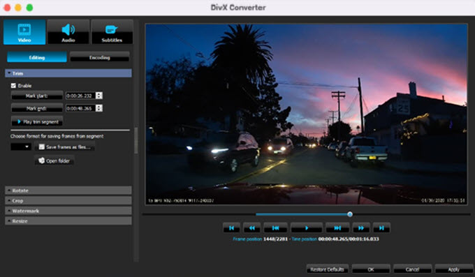 The paid version of DivX Converter also allows you to apply and save custom encoding settings, and apply simply editing to the video, such as cropping the borders, or add logos. The DivX player in the suite will be able to play HEVC-10 bit video in the Pro version.